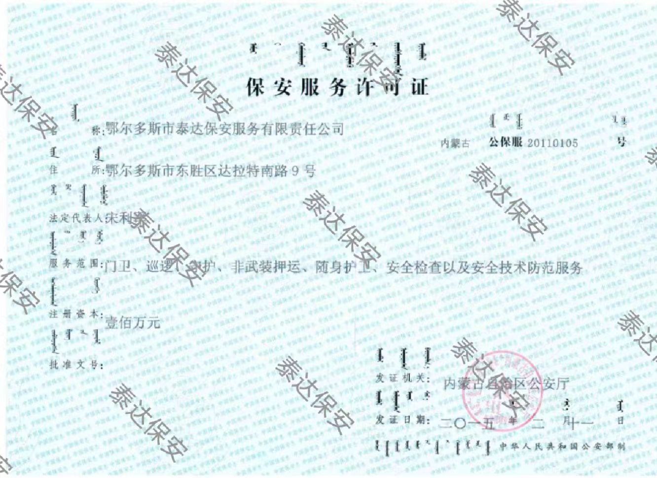 主辦單位:鄂爾多斯泰達(dá)保安服務(wù)有限公司