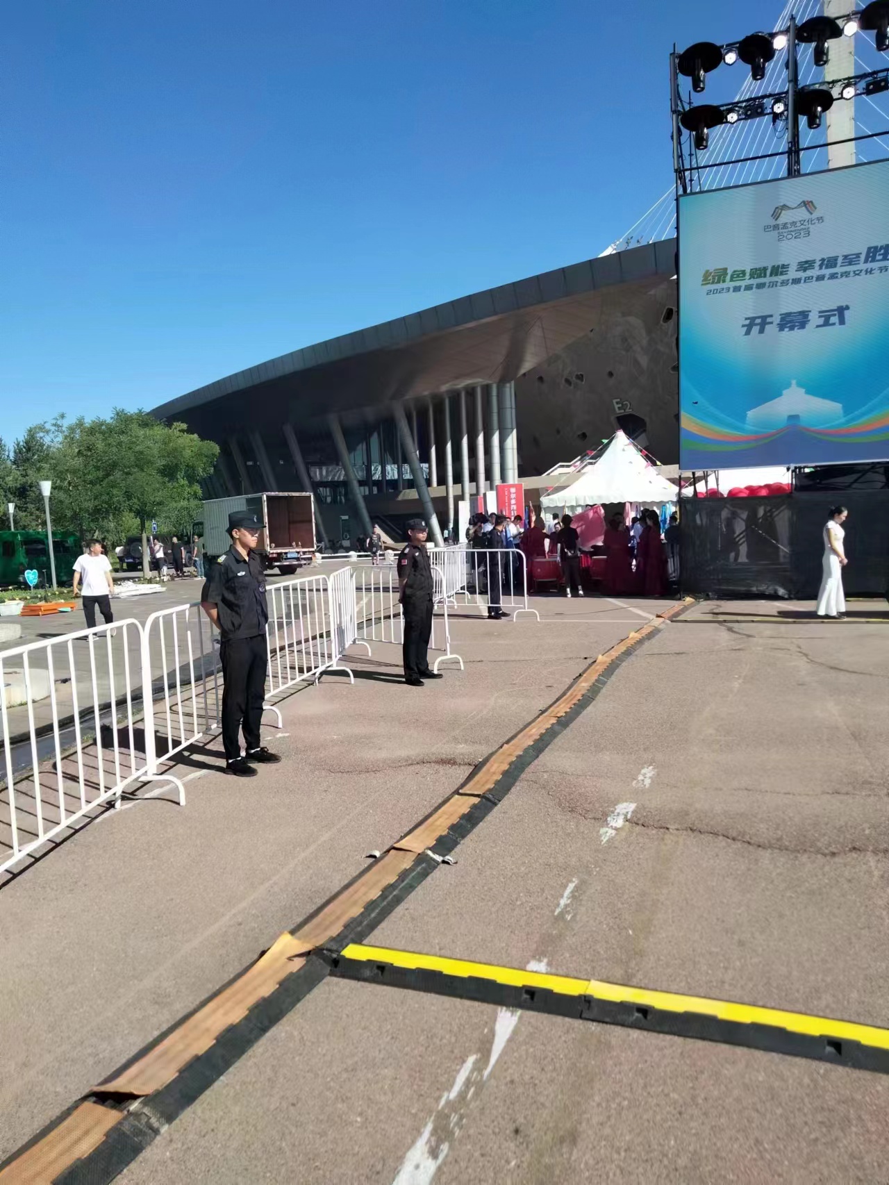 8月5日,由東勝區文化和旅游局主辦、巴音孟克投資集團有限公司承辦,以“綠色賦能·幸福至勝”為主題的巴音孟克文化節在東勝區全民健身中心隆重舉行。 泰達保安總經理郝永祥全程盯在現場,坐鎮指揮、安排部署;全體參勤隊員們著裝規范,精神振作,始終高度負責、認真執勤、嚴格安檢、熱誠服務,圓滿完成了對接文化節各項安保工作任務,為對接文化節順利舉行提供了有力保障,充分展現了泰達保安隊伍過硬的素質和良好的形象。隊員們的表現受到了參會貴賓和主辦方的充分肯定。 開幕儀式以絢麗的彩炮、放飛自由翱翔的和平鴿的形式,拉開了巴音孟克文化節的序幕。嘉賓和各界代表齊聚一堂,共同見證了巴音孟克文化節的盛大開幕。 保安員執勤期間,堅守崗位,全力做好各項安保維穩工作,對活動周邊進行全面排查工作,協助交警做好入場前及散場后的交通疏導工作。